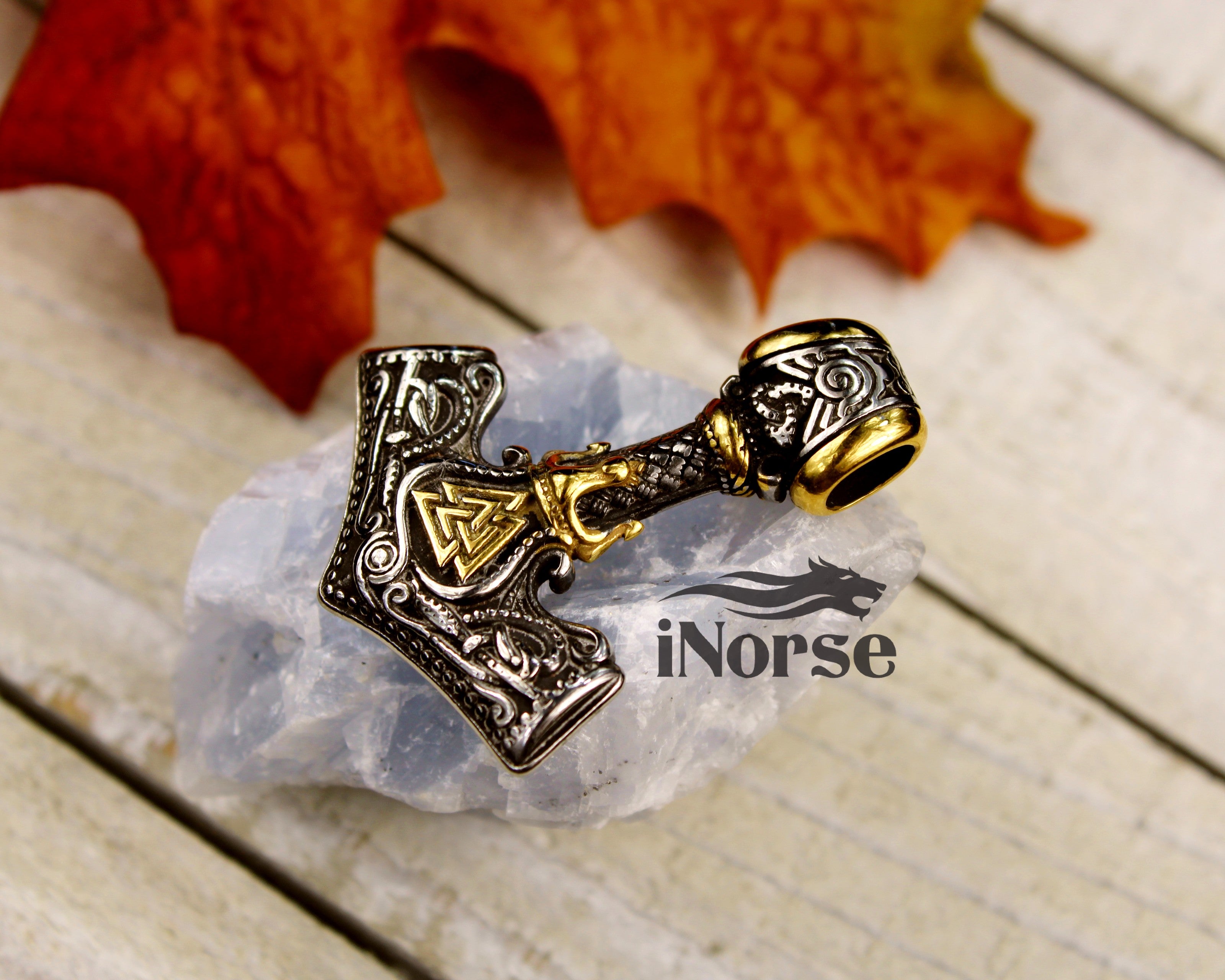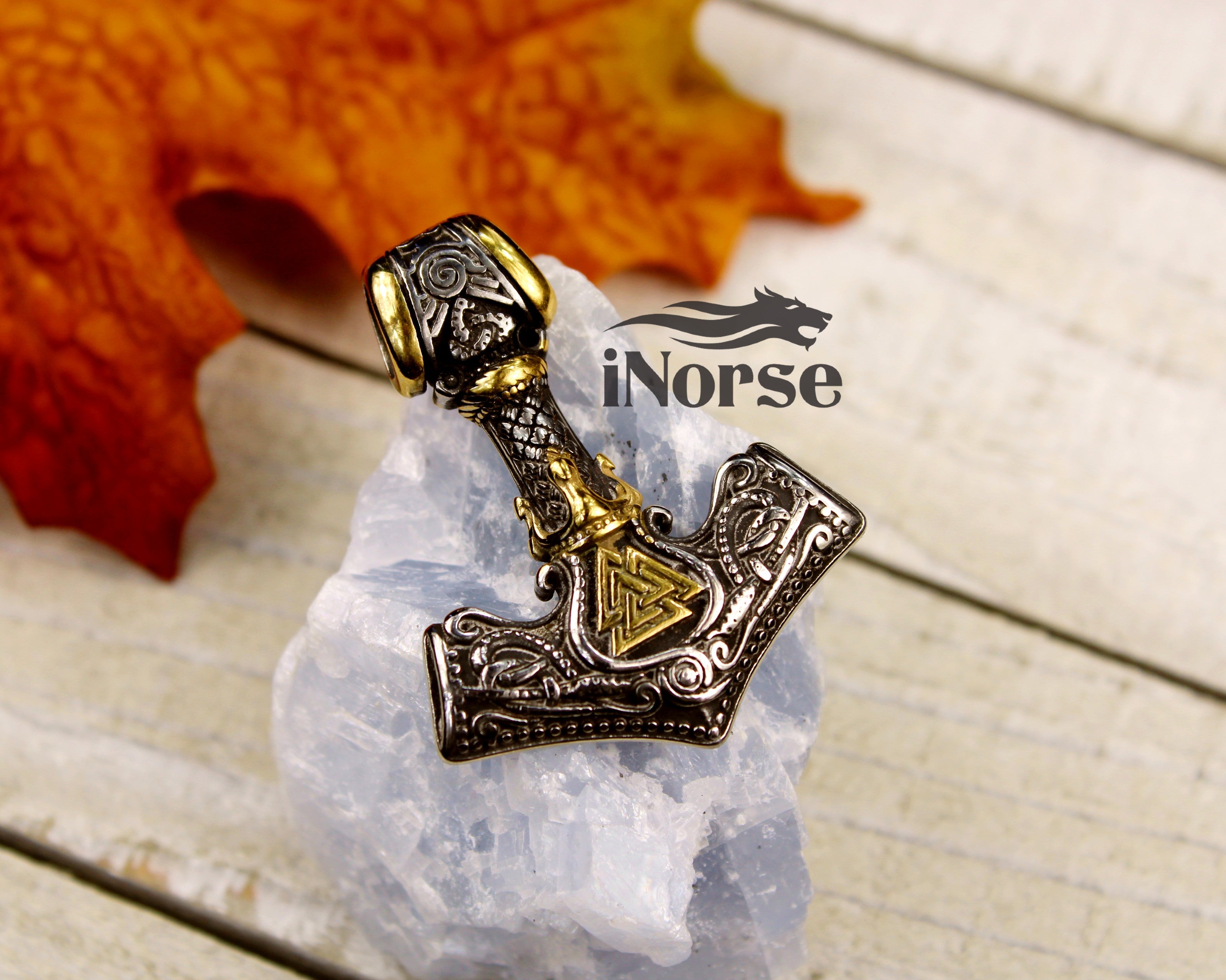 The Norse Hammer is called Mjolnir, Thor's famous weapon. Mjolnir has Proto-Germanic origins and roughly translates to thunder, or white, as in the color of lightning. Dwarfs initially forged Thors Warhammer for the Asgard Royals, and it was used as a weapon of war and a divine scepter.