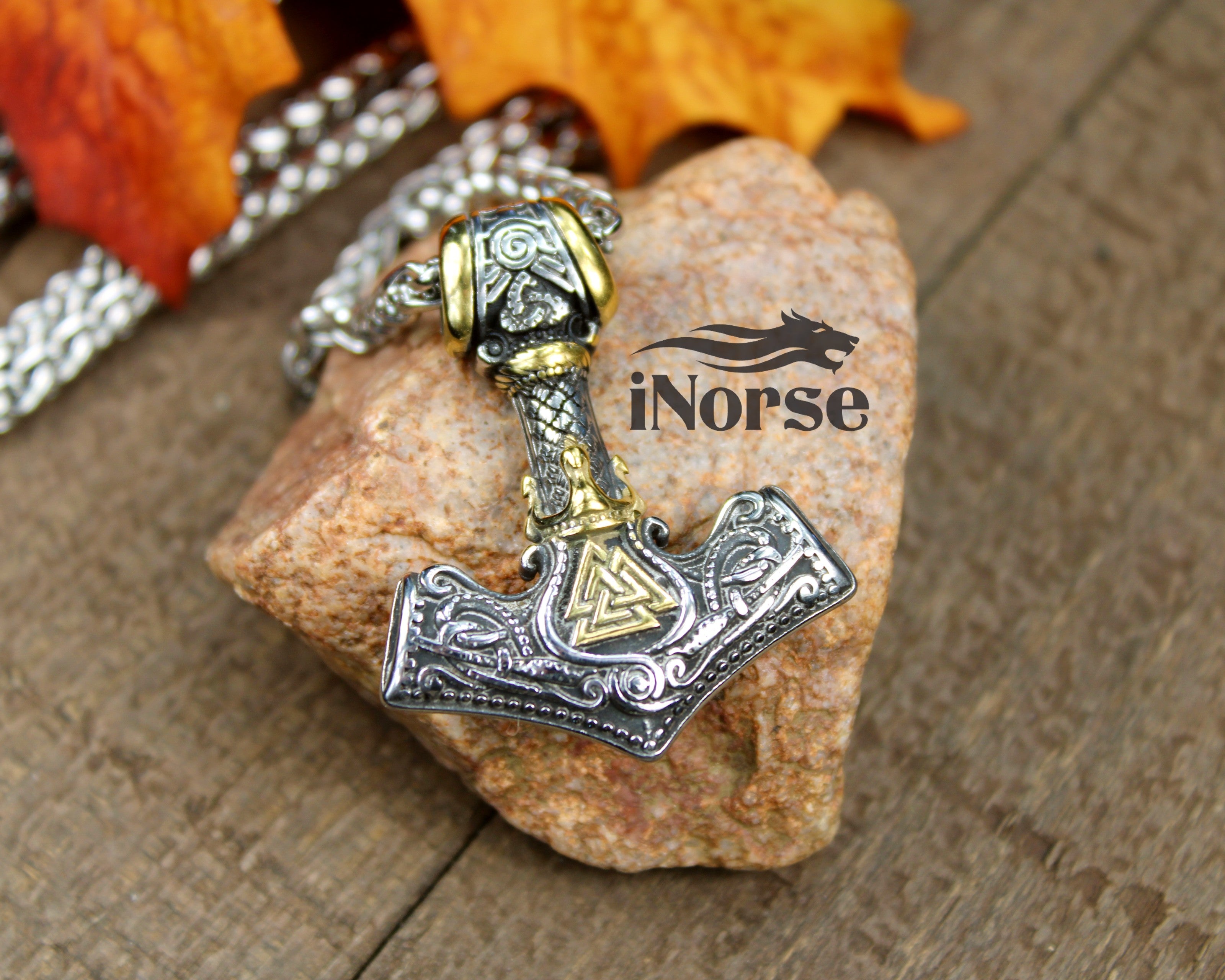 Valknut Mjolnir Necklace | Viking Pendant | Viking Necklace | Thor's Hammer Amulet | Norse Jewelry | Valknut Necklace | Viking Pendant | Viking Jewelry