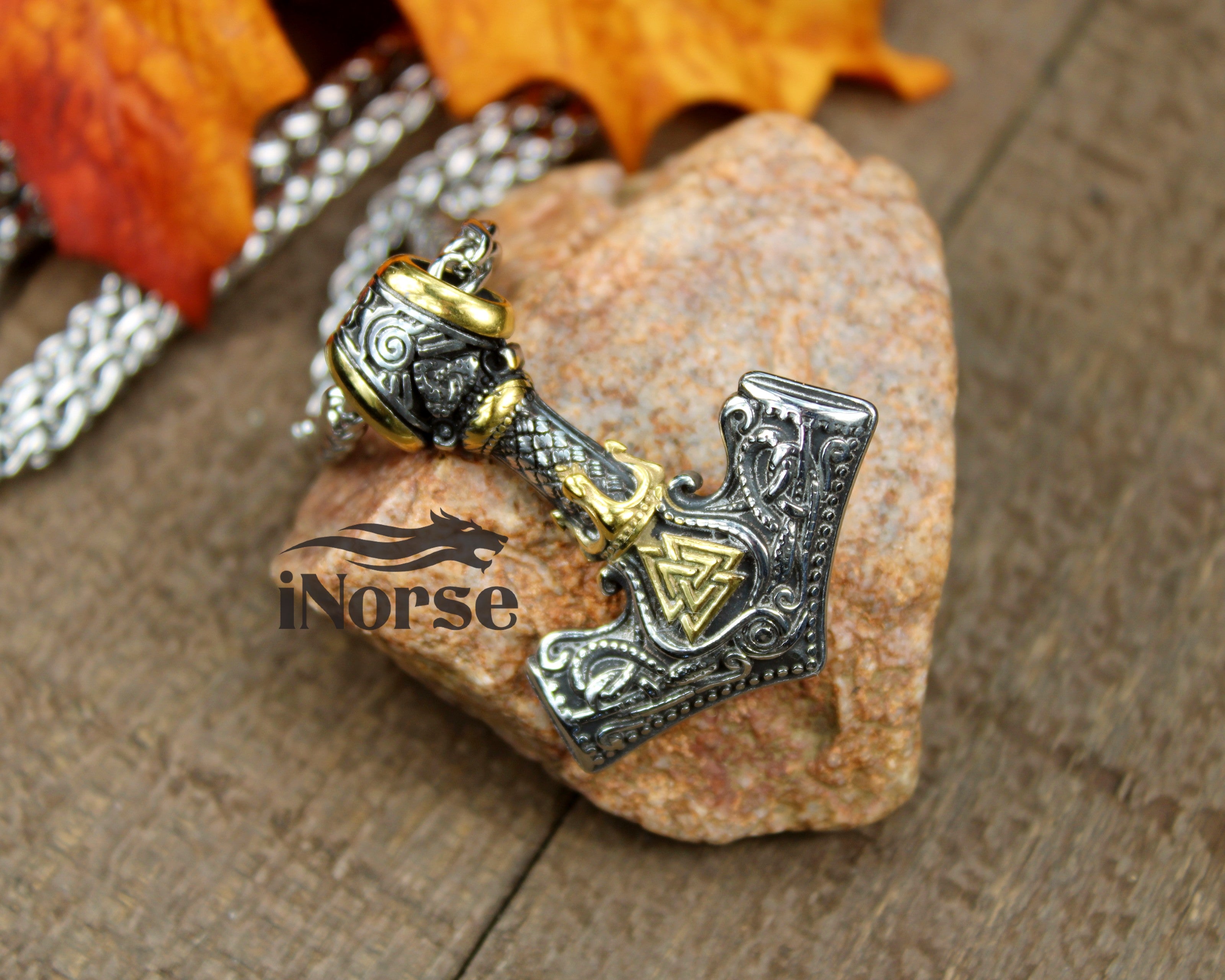 This necklace is made from Stainless Steel so that it won't tarnish like silver; it's a lot more corrosion-resistant, durable, and won't fade. Mjolnir and Valknut played a central role in Viking culture and lore. This unique Loot item will last you a lifetime. Bring out your inner VIKING by grabbing one today!